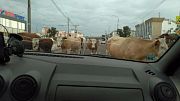 - Ехали в такси сегодня в 18:40 и столкнулись с неожиданным! Бесхозные коровы в центре города, на дороге, в районе "Восточных ворот"! И не одна, две, а стадо! Сами по себе гуляют в час пик. Хозяева, что ж вы так буренок одних пускаете, а вдруг ДТП, - писали очевидцы.