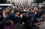 Народные волнения в центре бурятской столицы не утихают уже третьи сутки. Началось всё не то с митинга, не то со схода на площади Советов вечером 9 сентября и обернулось задержанием двух самых активных участников несанкционированной акции – депутата Народного Хурала от КПРФ Баира Цыренова и «предводителя» нелегальных таксистов республики Дмитрия Баирова. Первому стало плохо и его под конвоем доставили в БСМП – правда, потом отвезли обратно в отдел полиции, поскольку после осмотра врачи сообщили, что его здоровью ничего не угрожает. Второй пока находится в медучреждении, но неизвестно, в каком именно – связь с ним участники несогласованного мероприятия потеряли.