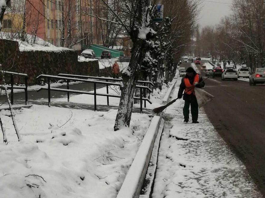 В Улан-Удэ коммунальные службы устраняют последствия ночного снегопада