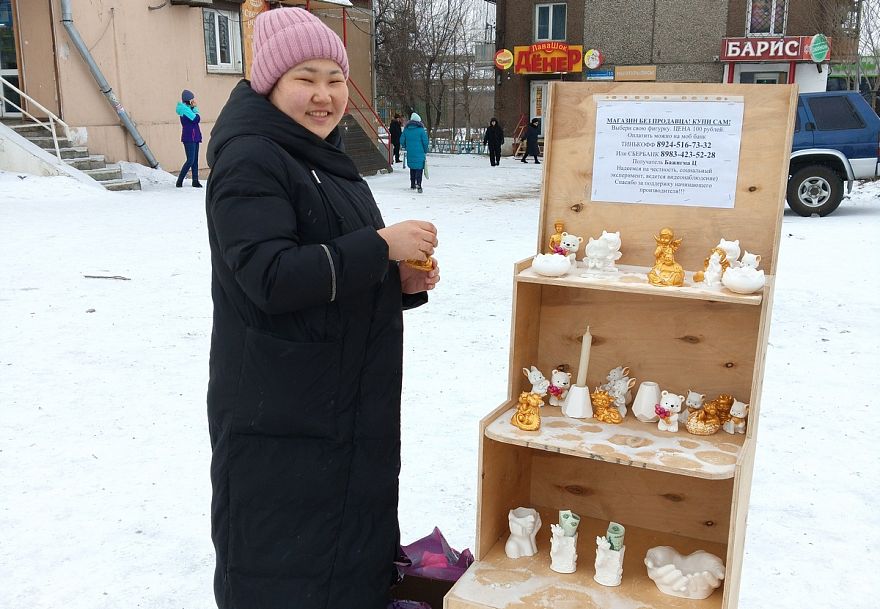 Самозанятая из Бурятии вручную создает гипсовые фигурки и торгует ими без продавца