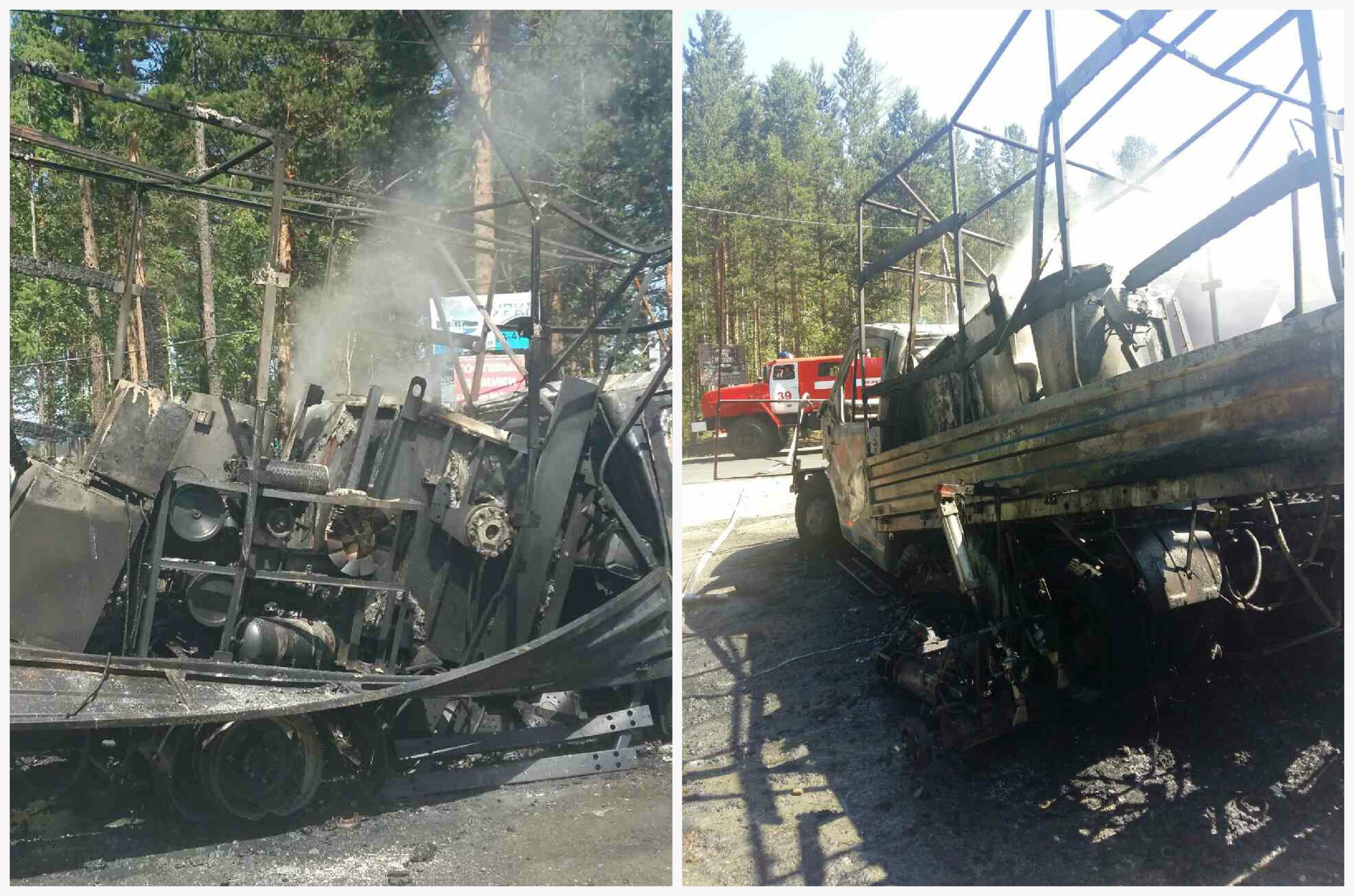 - Горел автомобиль для разметки дороги. Произошло возгорание в кузове автомобиля: загорелось масло подогревочного котла. Горелка с открытым пламенем подогревала пластик, чтобы он постоянно находился в жидком состоянии. Получился прогар в котле. В дальнейшем огонь распространился по всей площади автомобиля. Чтобы такого не происходило, нужно вовремя обслуживать автомобиль.
