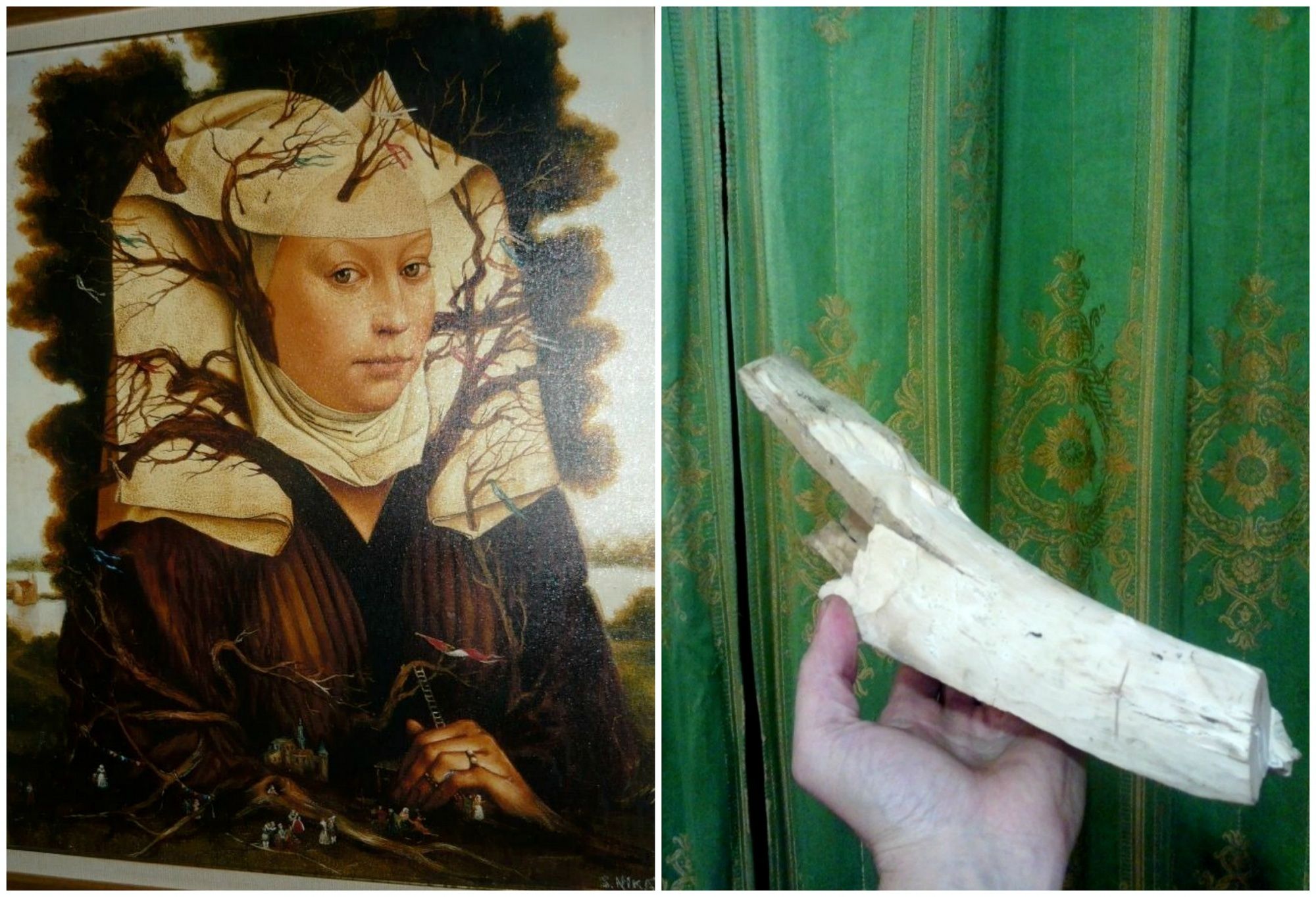 «Древо истории живописи или Путаный сон в 15 веке» - такая подпись красуется на задней стороне холста, рядом с печатью и подписью художника.