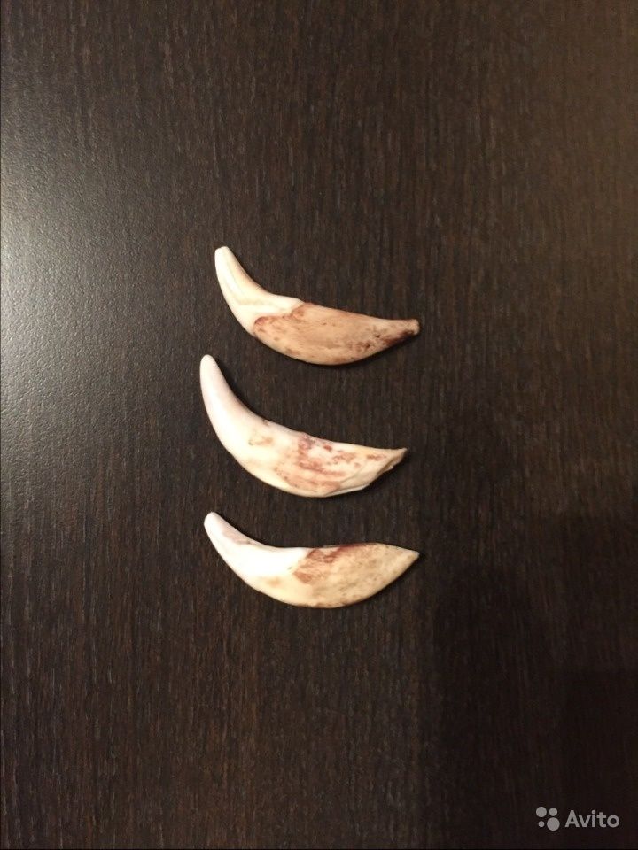 По 3 000 рублей за штуку продаются три волчьих клыка. Как пишет автор объявления, они предназначены для изготовления амулетов.