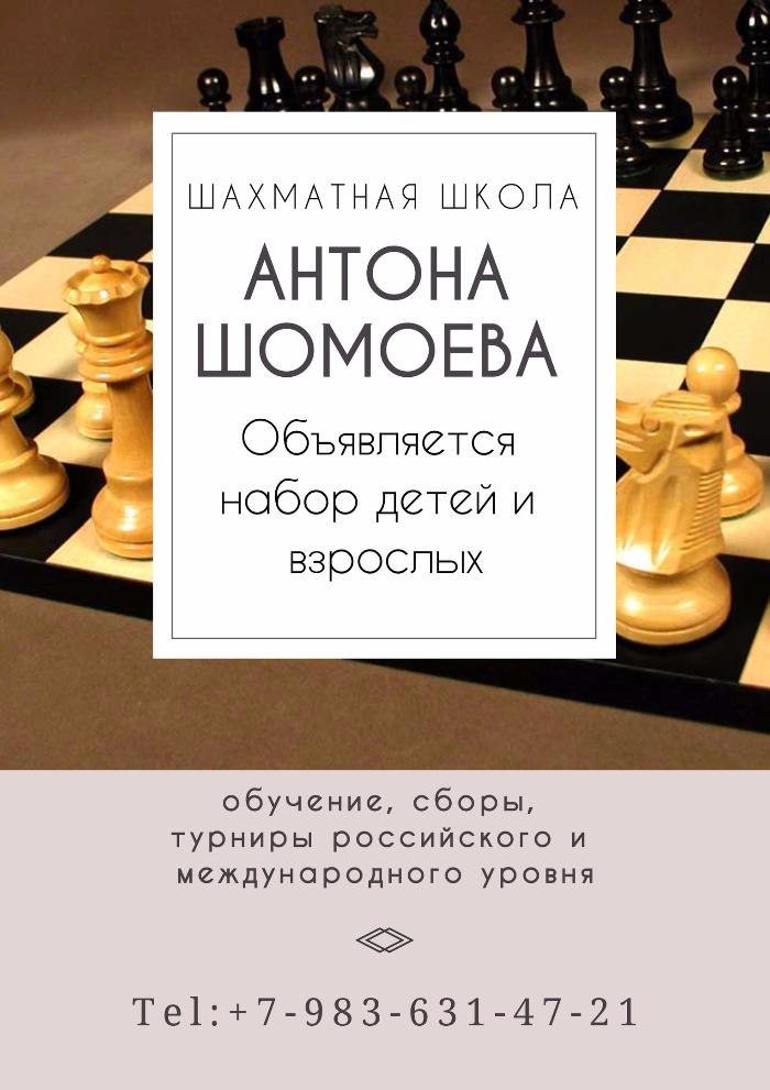 Успейте записать своего ребенка или записаться сами в школу шахмат Антона Шомоева. Возможны групповые и индивидуальные занятия. Подробности по тел.: 8-983-631-47-21