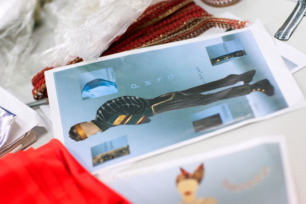«Всего в цеху нас трудится три человека. Но в этом спектакле объем работы большой, поэтому привлекли еще одного. Нужно сшить около ста костюмов для 24 артистов. Костюмы оригинальные, яркие. Это не исторический повтор, а скорее стилизация под Средневековье, современная интерпретация, словно наряды с подиума. Кристина Войцеховская (художник по костюмам – прим.авт.) поставила нам сложную, но в то же время интересную задачу, она направляет нас. На один костюм уходит примерно три дня, многие детали делаем вручную. Сейчас, конечно, когда спектакль на выходе, задерживаемся, работаем и без обеда, и в выходные дни».