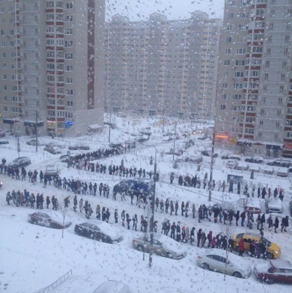 Кстати, минувшей весной в Сети бурно обсуждалось фото, на котором изображены длинные очереди на маршрутки в московском районе «Солнцево». Снимок появился в аккаунте «Ехидные новости» в Twitter.