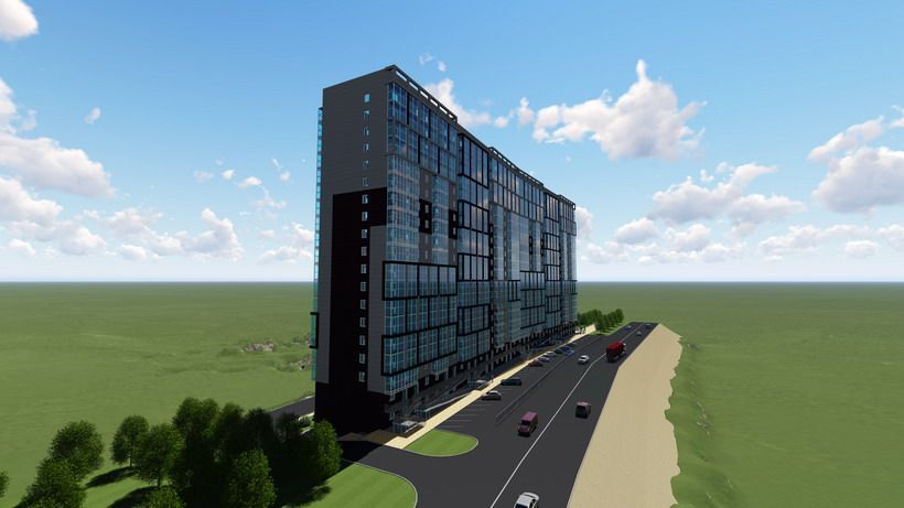 Он представляет собой 18-этажное здание современной архитектуры, которое отлично вписывается в урбанистику микрорайона, своего рода «город в городе».