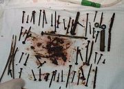 При осмотре выяснилось, что горло и пищевод находятся в идеальном состоянии, врач продвинулся дальше и зашел в желудок, где предстала удивительная и совершенно неожиданная картина. В желудке в химусе (жидкое содержимое желудка, состоящее из частично переваренной пищи, желудочного и кишечного соков, секретов желёз, жёлчи) находилось около 150 инородных тел.