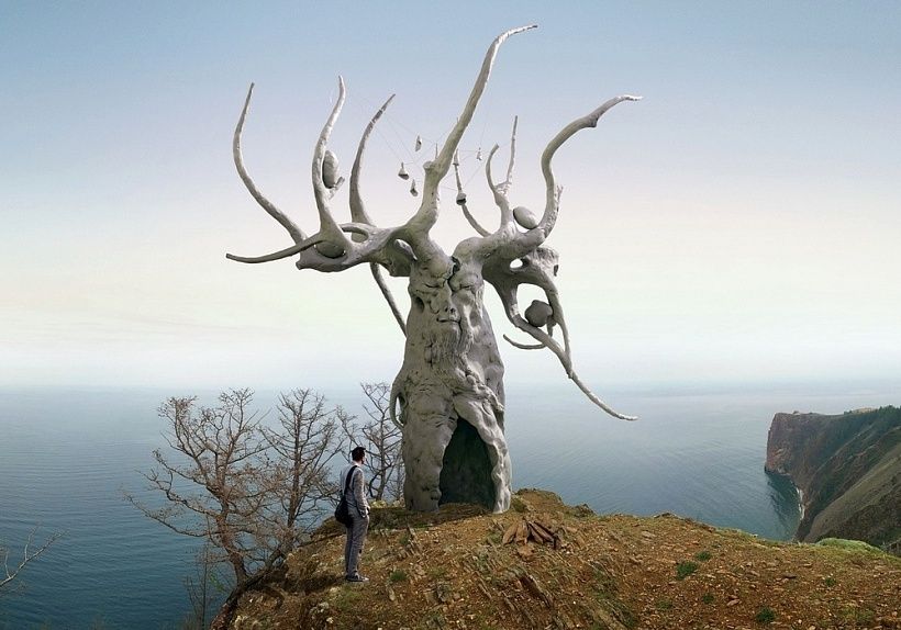 Композиция «Хранитель Байкала» – совместный авторский проект арт-фонда Даши Намдакова в Москве и иркутской галереи Виктора Бронштейна. Напомним, скульптуру планируется установить на самой высокой точке Ольхона – мысе Хобой – уже в следующем году. У её подножия хотят проводить различные мероприятия, связанные с народным искусством. Ожидается, что это место станет центром экотуризма, где будут проходить выставки и концерты. Само изваяние представляет собой древнее дерево, «крона которого превратилась в окаменевшую «корону» с «застрявшими» окатышами байкальской гальки».