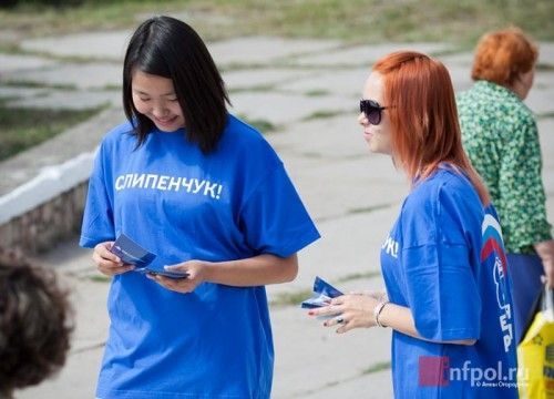 Не менее активно, чем в районах Бурятии шла агитационная работа: "молодогвардейцы" раздавали флажки с призывами отдать голос Юлии Гыпыловой, а агитаторы других кандидатов раздавали собравшимся яркие листовки. Особенно красочно смотрелись улыбчивые девушки в футболках с надписями "Слипенчук!".
