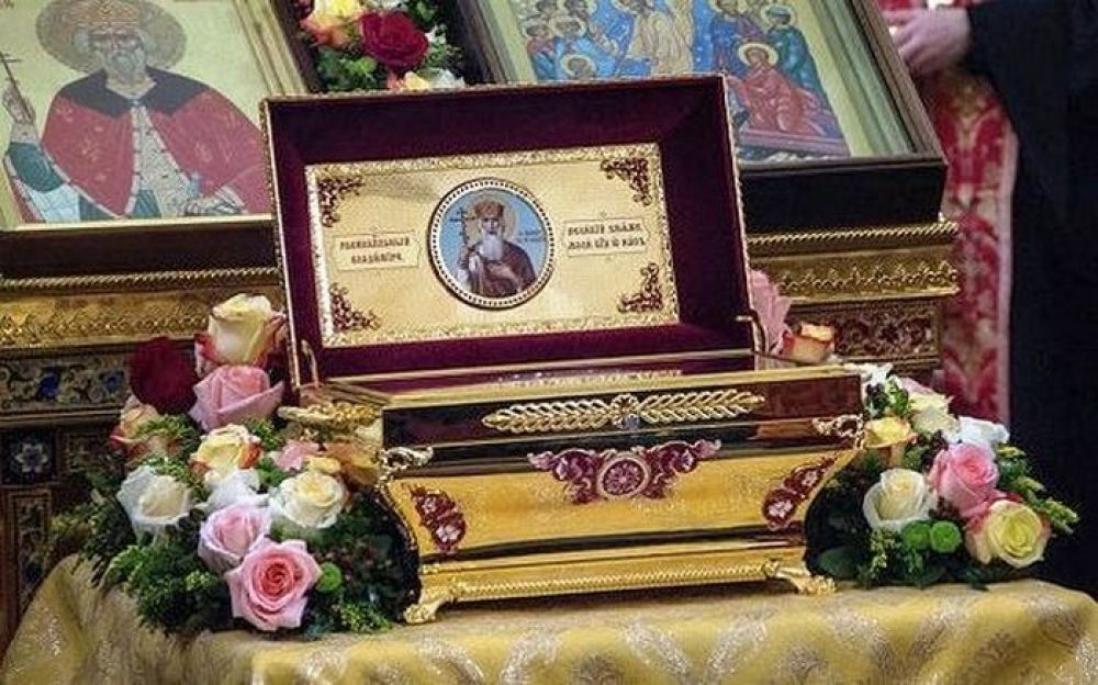 Князь Владимир – один из самых почитаемых в православии Святых. Его личность имеет для современной России судьбоносное значение. Он не только стоял у истоков христианства на Руси, но и воплотил те черты идеального и мудрого правителя, которые прошли сквозь всю отечественную историю. Святой князь был погребён 15 июля 1015 года в мраморном саркофаге под сводами Десятинной церкви в Киеве. Впоследствии она была разрушена, а саркофаг с останками князя долгое время пребывал под руинами – пока в 1635 году по указанию митрополита Киевского и Галицкого Петра (Могила) руины не были разобраны. Тогда часть мощей была передана в Москву царю Михаилу Фёдоровичу. Их поместили в Успенский собор Московского Кремля. В советский период и до недавнего времени святыня хранилась в фондах Музеев Московского Кремля. В 2010 году мощи в оригинальном ковчеге были торжественно переданы Русской Православной Церкви президентом России и размещены в Кафедральном соборном храме Христа Спасителя в Москве. С тех пор мощи они были доступны для поклонения, но только для москвичей и гостей столицы России.