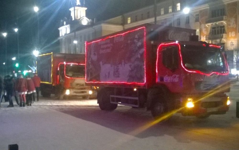 В маршрут социального волонтерского проекта «Рождественский Караван» компании Coca-Cola, который проводится с 2000 года, попал и Улан-Удэ. На сайте проекта организаторы обещали проехать по городским ёлкам и детским домам Бурятии с 27 по 30 декабря. Но в столице республики горожане увидели легендарные фирменные грузовики, украшенные лампочками, уже 24 декабря.