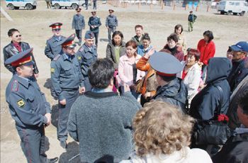 На место акции прибыли около десятка милицейских чинов и подразделение на случай разгона пикетчиков. Начальник Зареченского отделения милиции капитан Матвей Дмитриев и представитель МВД майор Анатолий Воронин предупредили самовольщиков о возможном применении силы со стороны милиции в случае попытки перекрытия трассы. По истечении часа собравшиеся отказались от радикальных действий и развернули свои транспаранты в стороне от дороги. Среди них — призывы к президенту Бурятии и новому президенту России Дмитрию Медведеву.