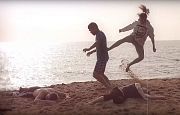 В этот самый момент сидевший посередине парень со словами «Опа-опа, да ты знаешь, кто я такой?» встаёт и тычет «корочкой» в лицо «возмутителю спокойствия». Но борец с мусором оказался не промах: один удар ноги – и ксива летит в сторону, как и смартфон, по которому молодец хотел позвонить каким-то «людям». Такая же участь ждёт и другого любителя бросать мусор где попало. А вот их товарищу бравировать нечем. «Корочки нет, телефон на зарядке, отец ушёл от нас», – сообщил парень и вроде как сделал ноги, но потом коварно подкрался к обидчику со спины. Хотел было огреть его гитарой – а получил сам, да ещё и гитары лишился. Главный же герой, спокойно забрав свой мешок, покинул место разборок.