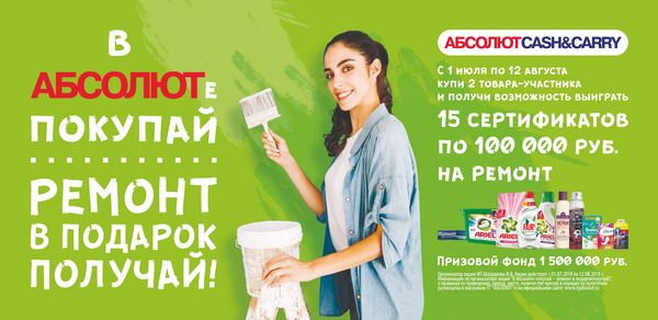 Торговая Группа «Абсолют» и Компания «Проктер энд Гэмбл» поздравляет всех победителей акции «В Абсолюте покупай-Ремонт в подарок получай!».