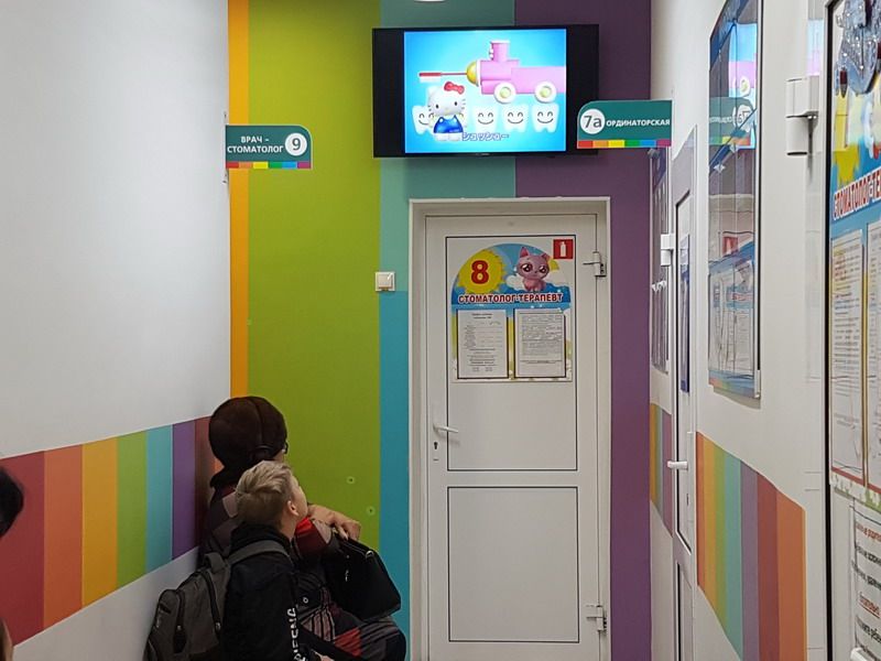 Также Детская стоматологическая поликлиника г.Улан-Удэ проводит обучение детей и родителей: пока малыши ждут своего приема в коридоре, им показывают тематические мультфильмы, в том числе о правильной гигиене полости рта, как не бояться лечить зубы.
