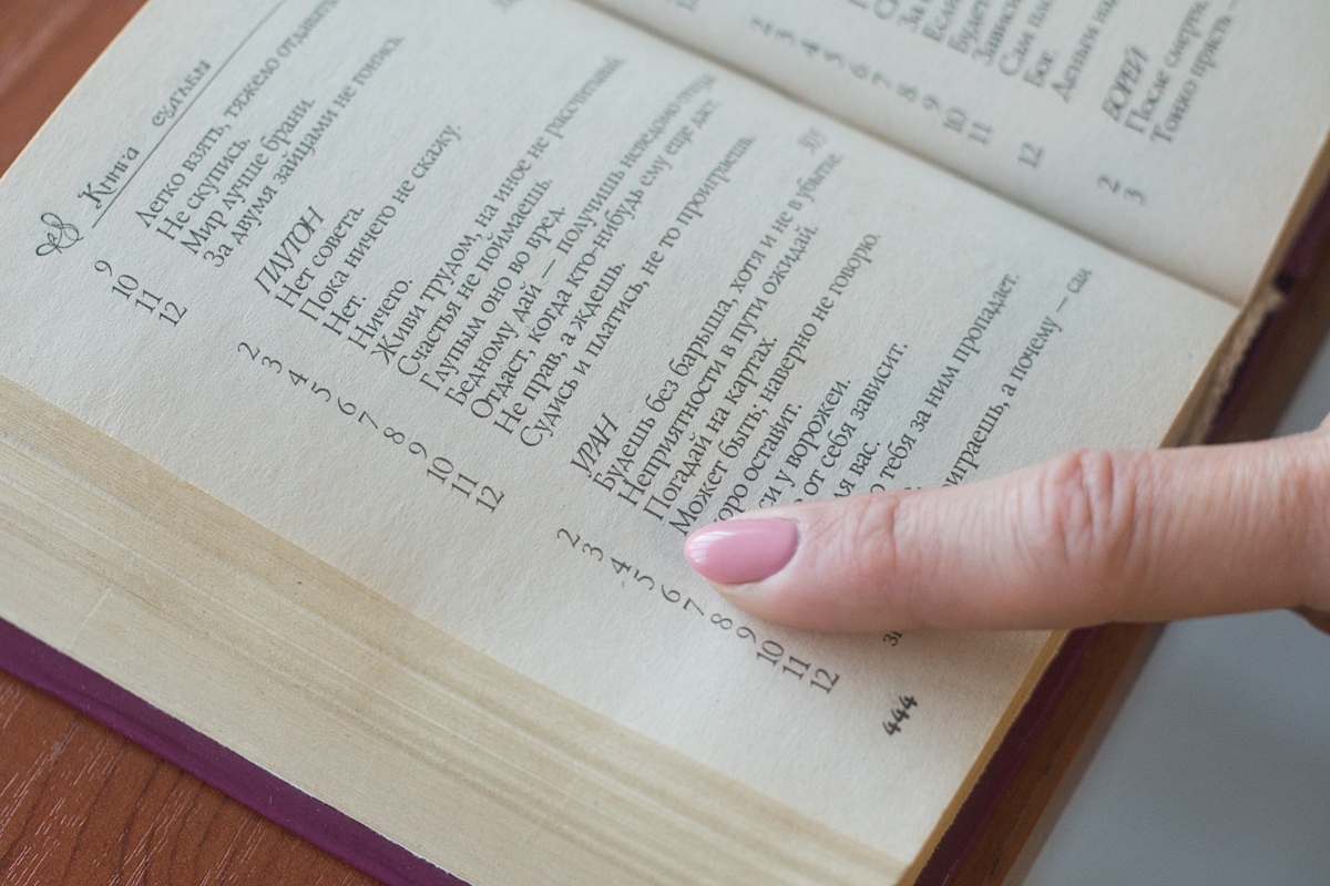 Ранее журналисты infpol.ru опробовали на себе современные способы ворожбы, «любовный» расклад на картах и даже попытались вызвать пиковую даму. А в этот раз мы решили погадать по так называемым «кругам счастья» (или по Оракулу). Этот способ один из сотрудников редакции нашёл в «Полной энциклопедии гаданий», которую можно приобрести в любом книжном магазине. Он достаточно простой: нужно выбрать любой вопрос из списка (а всего их 204), отыскать «круг счастья» под тем же номером, под которым означен заданный вопрос, а затем бросить в самую его середину зерно или шарик, скатанный из хлеба или воска.