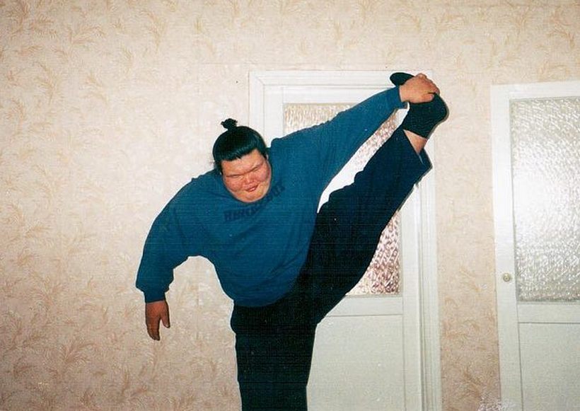 Недавно наш земляк Анатолий Михаханов, который минувшей осенью официально попрощался с миром сумо, выложил в соцсетях фото, сделанное в 2002 году, когда ему было 19 лет. На снимке экс-спортсмен стоит на одной ноге, а вторую обхватывает рукой.
