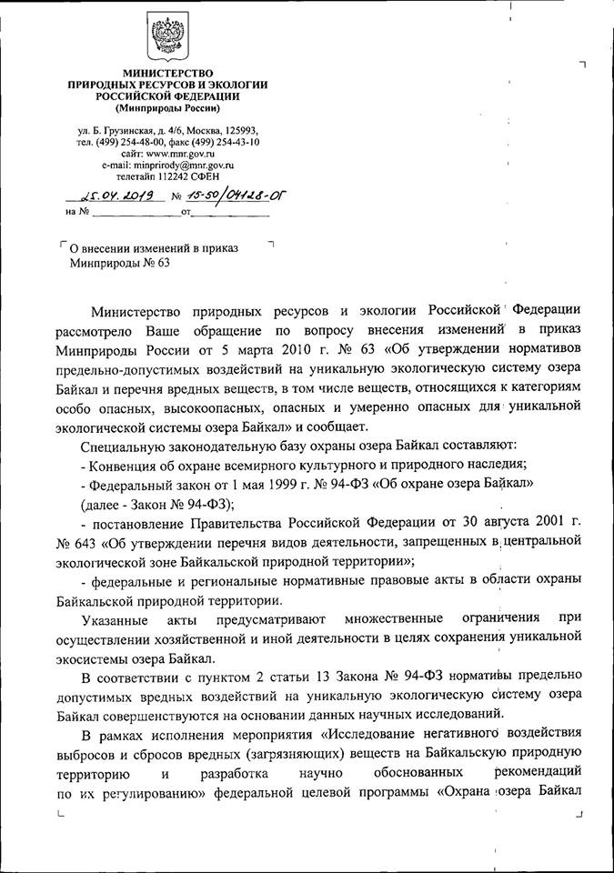 Координатор «Рек без границ», известный эколог Александр Колотов и его коллеги решили отправить обращение в Минприроды России, в котором изложили свои опасения. И недавно получили развёрнутый ответ на трёх листах. Его Александр Колотов опубликовал на своей страничке в Facebook.