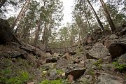 Если с розыском осколков хондрита дело пошло трудно (нам не хватило оборудования и времени), то вот с поиском секретной пещеры старообрядческого церковника ситуация оказалась более благополучной. При помощи нашего проводника, представителя БРО «Русское географическое общество», сотрудника Байкальского института природопользования Владимира Черных, нам удалось обнаружить тропу, ведущую на самую вершину горы.