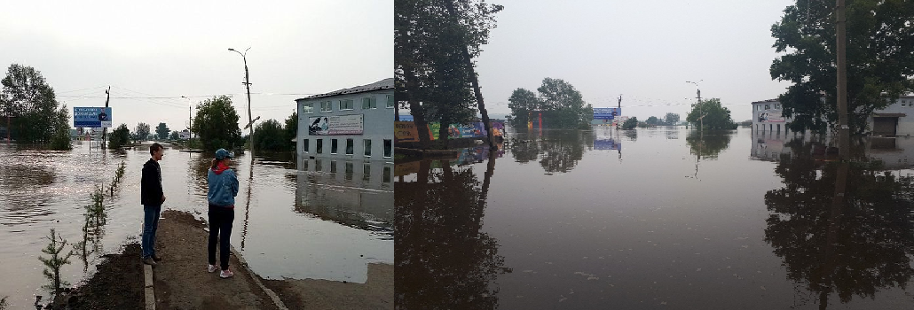 Судя по фотографиям и паникующим жителям, город постепенно уходит под воду. Первое фото ориентировочно сделано в 10 часов утра. Здесь мы еще видим какую-то часть дороги и большую часть здания. Следующая фотография появилась в Сети около 15-00. На ней участок суши уже скрылся под водой, а здание затопило до середины окон.
