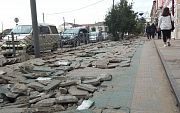 В Улан-Удэ сегодня, 14 августа, на пешеходной части улицы Ленина, которую пересекает улица Советская, начали снимать тротуарную плитку. Перед зданием одного из торговых центров несколько молодых людей в ярких жилетах снимают старое покрытие.