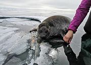 Вскоре путешественники поняли, что бедолага примёрзла ко льду. Чтобы вызволить животное, туристам пришлось поливать его тёплой водой и по очереди растирать ласты. Спустя время пресноводный тюлень оказался на свободе. Ещё немного усилий – и люди помогли нерпе нырнуть в озеро. Преодолев несколько метров, она замерла, но после команды «плыви» вильнула хвостом и исчезла в тёмной ледяной воде.