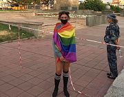 А в середине июля в популярном паблике «Весь Улан-Удэ» в Instagram появилась фотография юной девушки – почти подростка, стоящей недалеко от памятника Ленину на площади Советов. Её лицо наполовину было закрыто повязкой чёрного цвета, а сама героиня снимка обернулась в радужный флаг ЛГБТ-сообщества (аббревиатура ЛГБТ возникла в английском языке для обозначения лесбиянок (Lesbian), геев (Gay), бисексуалов(Bisexual) и трансгендеров (Transgender) – прим. авт.).