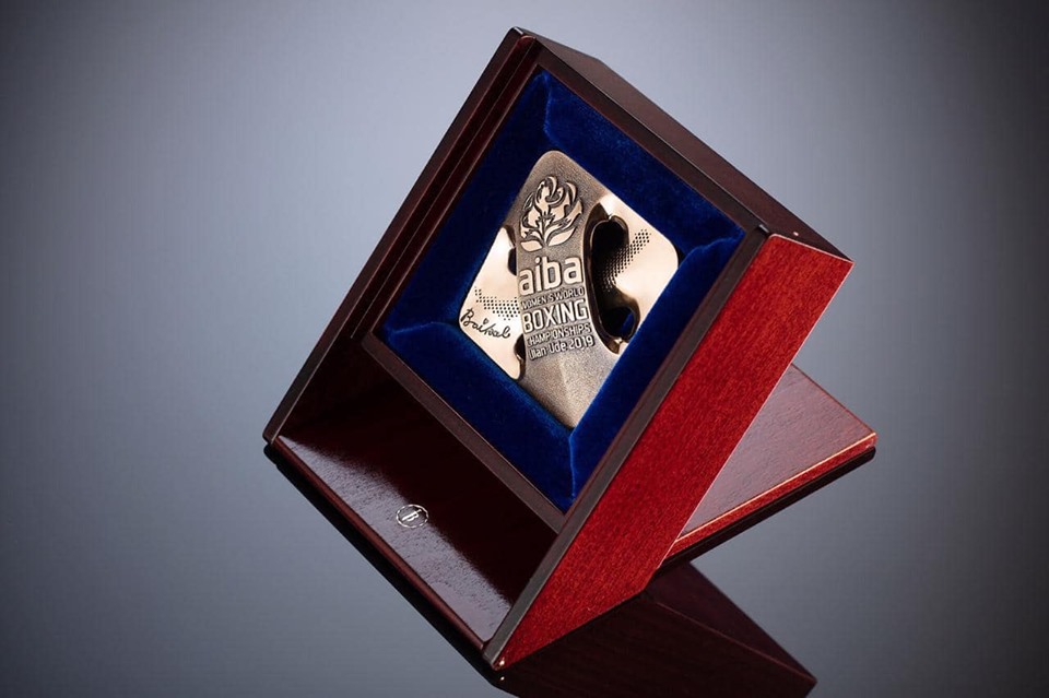 Оригинальность медали проявляется в конструктивном решении, которое основано на преломлении двух плоскостей, перетекающих одна в другую. Квадратная форма напоминает боксерский ринг. Верхняя поверхность с логотипом слегка выступает вперёд, выгибаясь над нижней частью как мост, раскинутый над водой. Под ней нанесено контурное изображение озера Байкал.