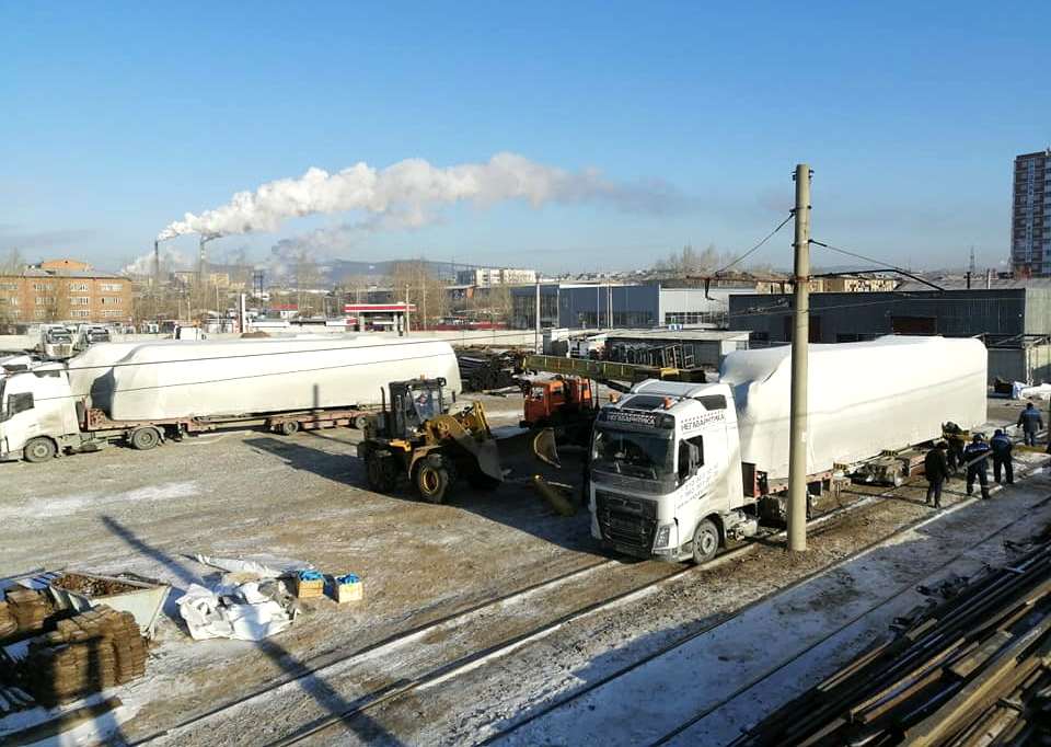 До столицы Бурятии добрались ещё пять трамваев модели 71-911М «Львёнок». Фото с зачехлёнными вагонами, погружёнными на тралы, опубликовала в соцсетях представитель МУП «Управление трамвая» Марина Раднаева.