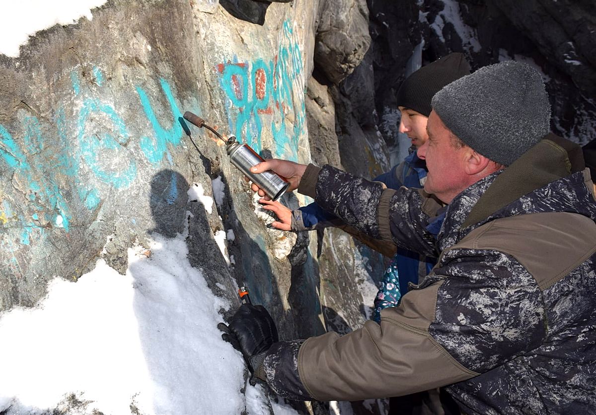 Накануне в курортном посёлке Аршан высадился экологический десант. Представители Тункинского нацпарка вместе со студентами Байкальского колледжа недропользования очистили от надписей скалы около Аршанского водопада. Это место пользуется огромной популярностью у туристов, которые оставляют там на память свои «автографы» из серии «Здесь был Вася». Многие из них, возможно, даже не догадываются, что тем самым совершают акт вандализма по отношению к памятнику природы, рассказали в пресс-службе резервата.