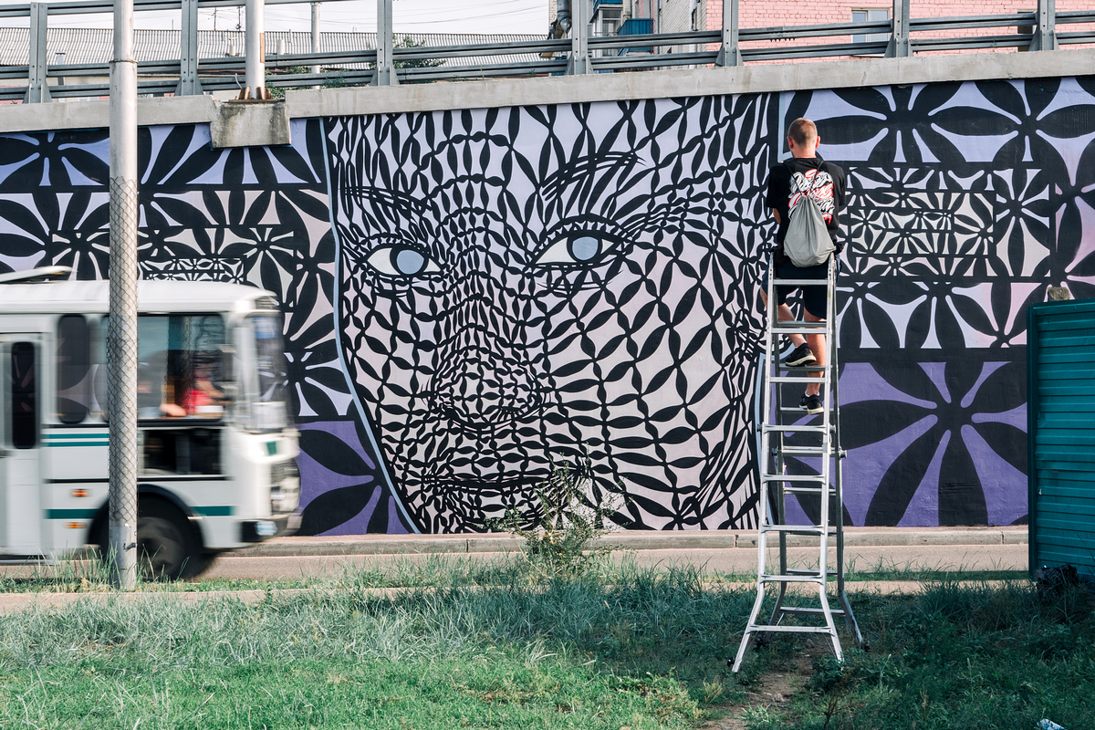 - У нас часть работ раскидано по дворовым площадкам и гаражам. Весной мы запускали акцию «Выездные бомбочки». Это быстрые работы (1 - 2 часа). Для нас принципиально, чтобы это было рядом с учебным заведением или в проходных местах (гаражи, стены), которые «изуродованы» жизнью. То есть на них надписи висят десятилетиями, которые никого не смущают. И оформляли их. То есть у нас есть и дворовые работы, и те работы, которые у всех на виду на центральных развязках. И их будет ещё больше, - рассказывает Валентин.