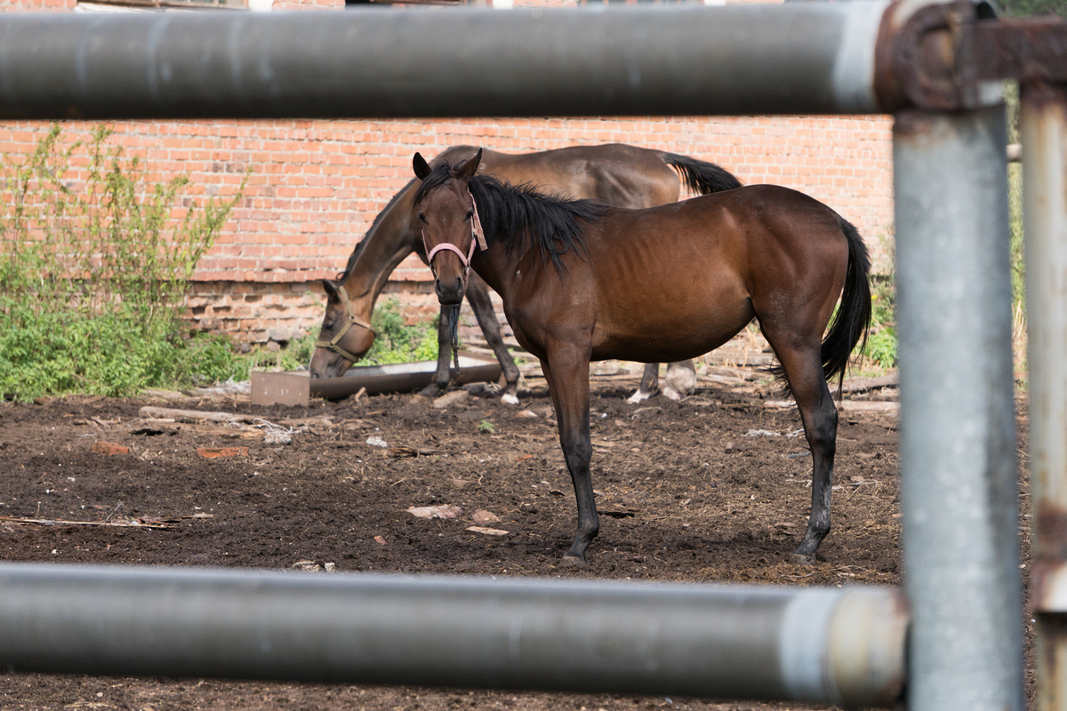 На месте ультрасовременного комплекса «красуются» полуразрушенные трибуны, ветхие конюшни и заросшая травой территория. Фото: Евгений Коноплёв