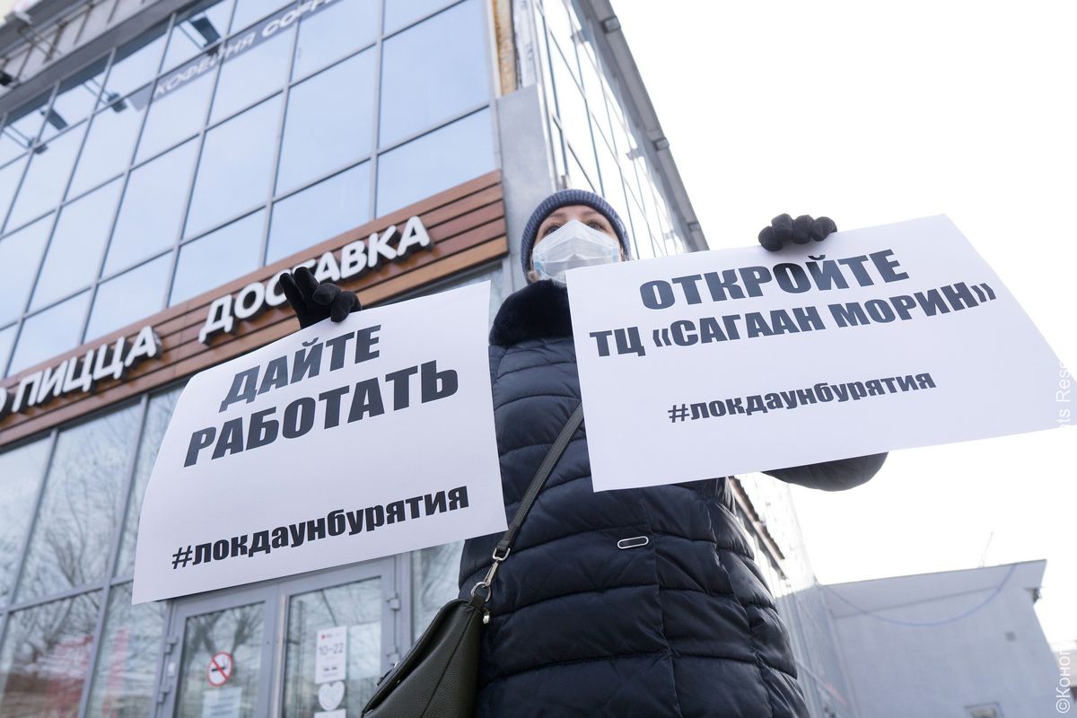 На днях десятки предпринимателей собрались около одного из улан-удэнских ТРЦ. Они выразили недовольство решением властей на две недели закрыть все магазины и бутики – за исключением известных сетевых брендов. Последние по-прежнему работают.