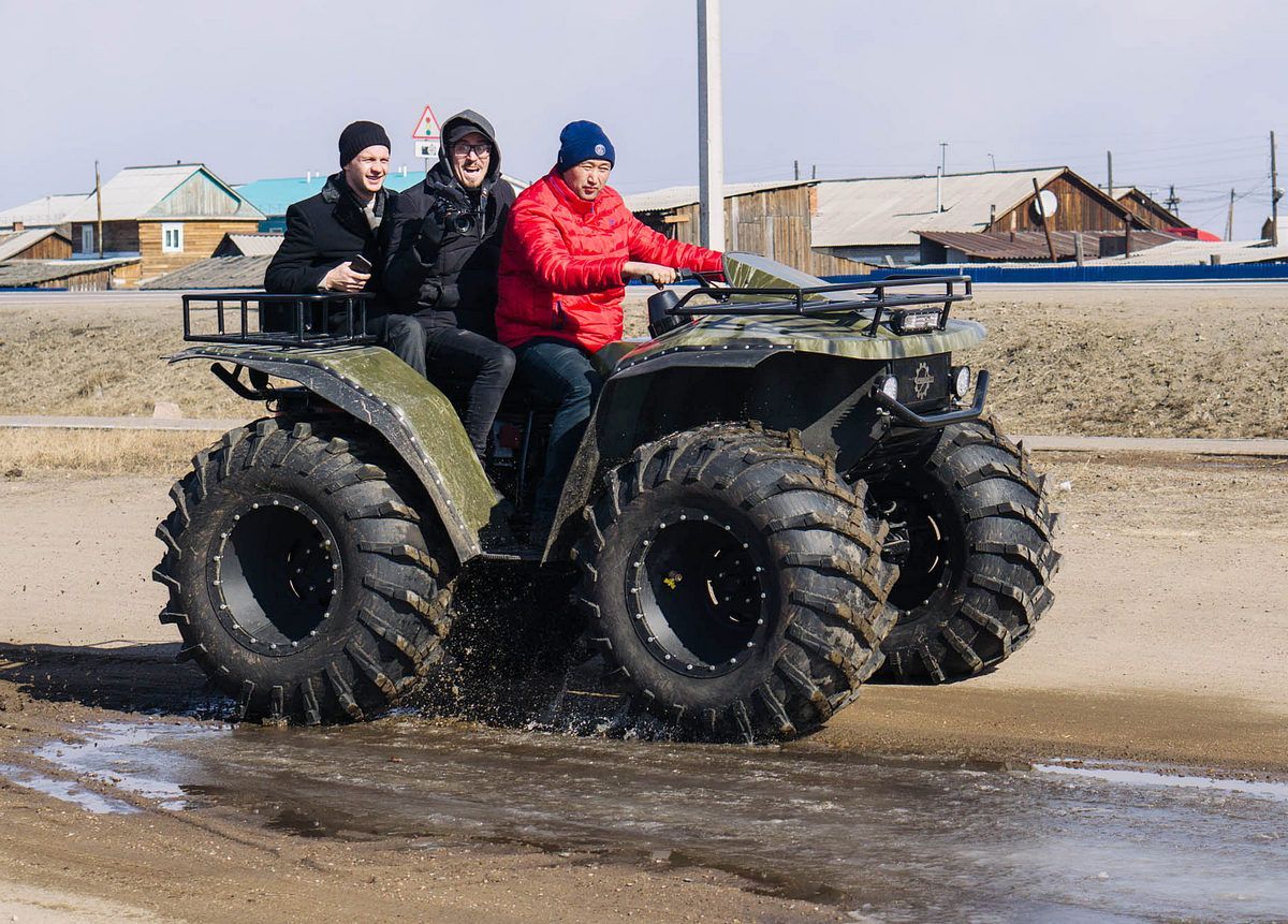После всех рассказов об этом уникальном вездеходе мы, конечно же, испытали его на деле. Вместе с Владиславом выехали за город, где прокатились по болотистому полю, покружились по льду реки и легко перемахнули через крутую горку.