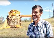 - Конечно, без помощников я бы её не сделал. Сама задумка позаимствована у другого художника. У него много интересных изделий. Когда мне дали фото, требовалось определить порядок работы. Начинал, конечно, с лица и раза три его переделывал, столько материала поубивал. Но всё-таки получилось. Интересно, красиво, сам процесс мне понравился, – заявил мастер. – Кто-то смотрит и видит хозяина горы, кто-то – сказочного персонажа, а кто-то – что-то из прошлого. Каждый смотрит и своё вкладывает.