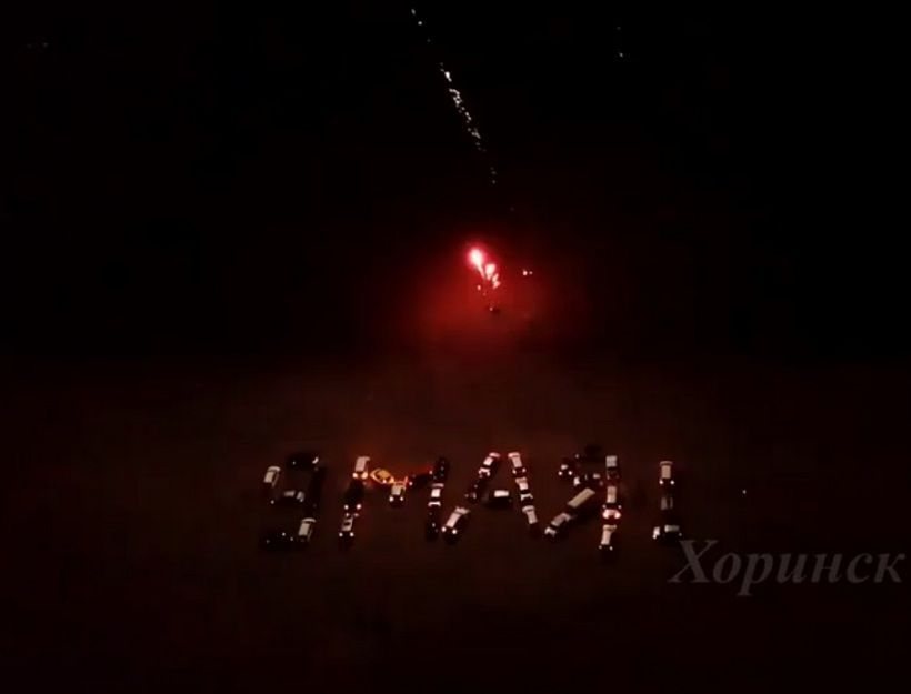 В преддверии 76-ой годовщины Победы в Великой Отечественной войне жители Хоринского района собрали из своих машин огромную надпись «9 мая». Видео, сделанное с высоты птичьего полёта, разместили в местном паблике «Хоринск онлайн» в Instagram.