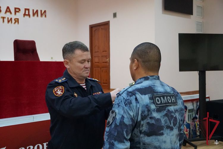Начальник республиканского управления Росгвардии, полковник полиции Сергей Гатилов вручил государственные награды военнослужащим и сотрудникам спецподразделений ведомства, отличившимся во время проходящей на Украине специальной военной операции (СВО).