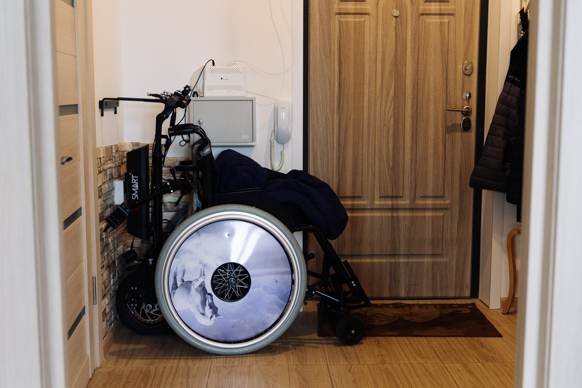 С Александрой Дугаровой, инвалидом первой группы, мы встретились в ее просторной квартире на остановке ФСК. Девушка рассказывает, что сделала здесь все под свои потребности: высокие полы без порогов, широкие низкие двери, место для уличной инвалидной коляски с электрической приставкой, рабочая зона, складной турник для разгрузки спины. Она любит уют и порядок, все лежит на своих местах: аккуратно сложенные по полкам книги, награды и сувениры, коллекция минералов, доставшаяся по наследству от дедушки.