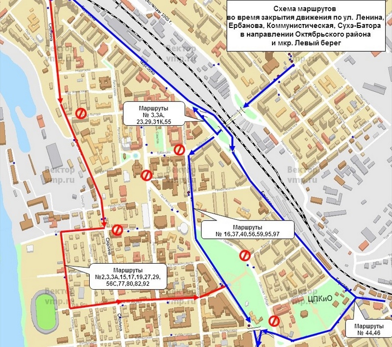 Площадь Советов, улицы Ленина, Сухэ-Батора, Ербанова, а также проспект Победы будут закрыты для автотранспорта с 6:00 до 24:00. Объезд будет осуществляться по улицам Коммунистическая, Смолина и Борсоева.