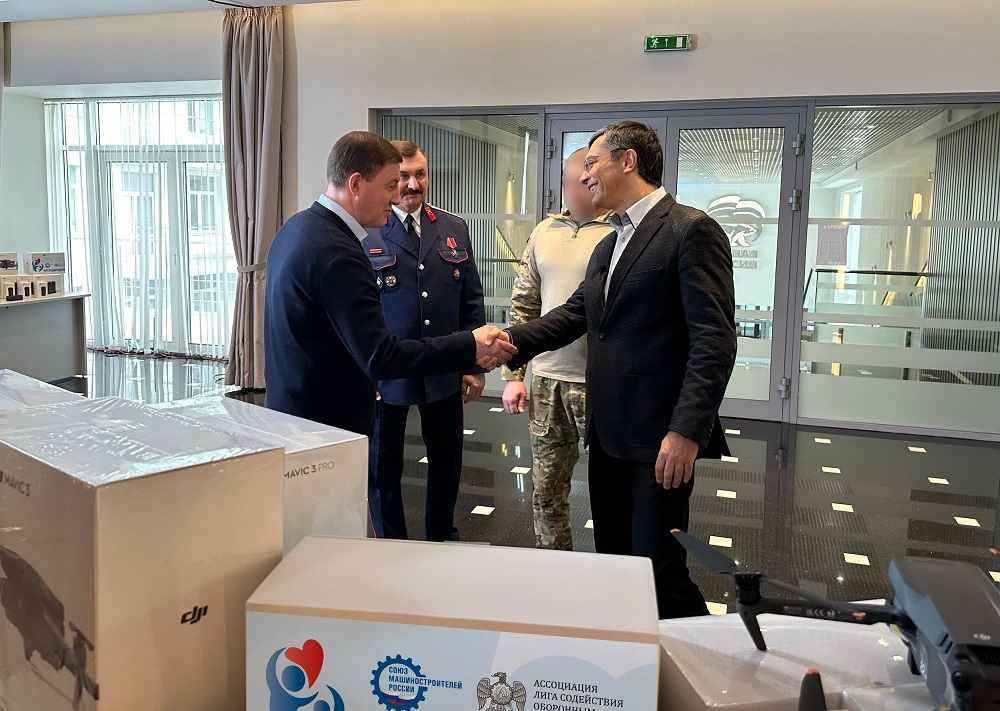Первый вице-президент СоюзМаш Владимир Гутенев при передаче груза подчеркнул, что это не первая помощь бригаде специального назначения Центрального военного округа и 15-му казачьему добровольческому отряду «Ермак». Только в прошлом году было передано 94 БПЛА на фронт.