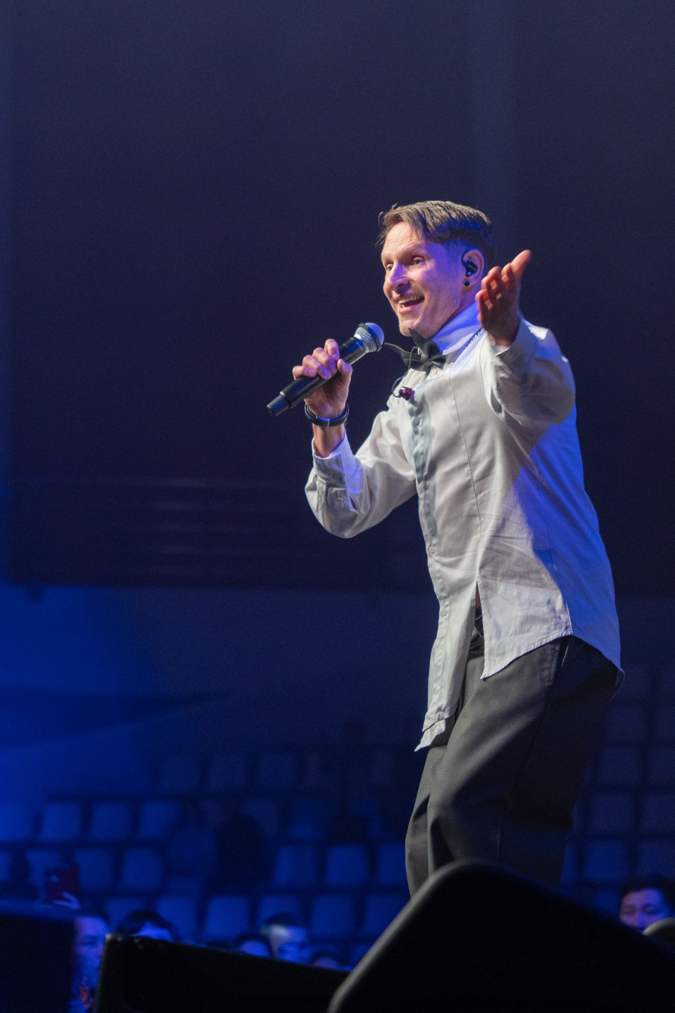 После «Динамита» на сцену в буквальном смысле выскочил Владимир Панченко, лидер группы Faktor-2. Когда-то это был дуэт с русским названием «Фактор-2» под продюсерством Сергея Жукова, в котором выступали Владимир Панченко и Илья Подстрелов. Однако в 2012 году он распался, и теперь в стране выступают два коллектива с одним и тем же названием: «Фактор-2» с солистом Подстреловым и Faktor-2, где поёт Панченко. Ребята и судились, и отстаивали свои права на песни, спорили, кому и как называться, но в итоге оба успешно выступают с одинаковым репертуаром.