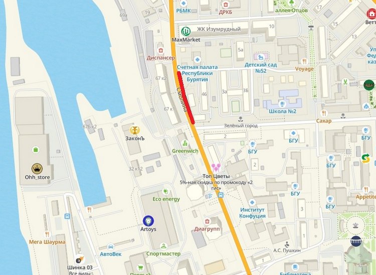 На участке по улице Смолина - от Сухэ-Батора до Бау Ямпилова, планируются работы на тротуаре и одной полосе проезжей части в направлении из центра города.