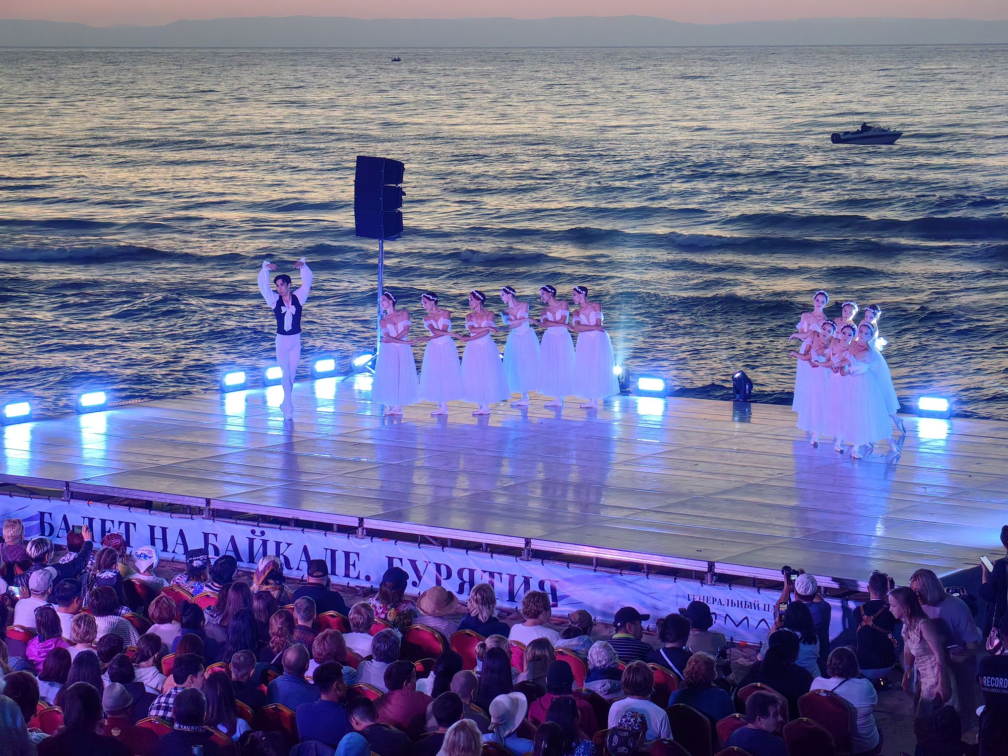 Главным же действующим лицом стал Байкал. Небо меняло цвет с оранжевого на розовый, становилось бледно-голубым, окрашивалось в золотой. Закатное солнце сверкало на бушующих волнах озера, создавая великолепную и непередаваемую картину. Зрители, затаив дыхание, следили за действием. Адажио из “красавицы Ангары”, “Восхождение на Фудзияму” в хореографии Морихиро Ивато, бессмертное “Лебединое озеро” и па-де-де из балета “Пламя Парижа” – каждый номер потрясал и влюблял в себя. Нет сомнений, что зрители остались в восторге: выступления артистов сопровождались аплодисментами и возгласами “Браво!”