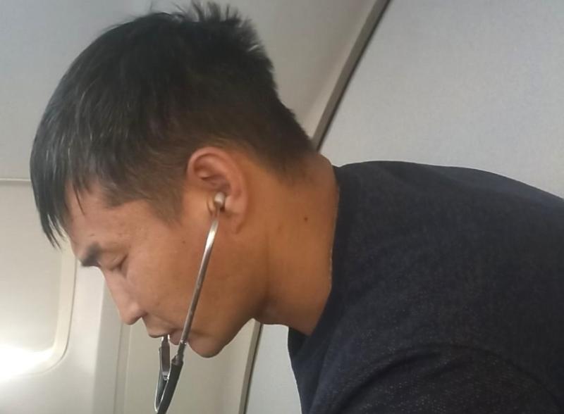 Наконец, пилот принял решение по громкой связи обратиться ко всем пассажирам авиарейса с вопросом, есть ли на борту врач. К счастью, этим же авиарейсом, с пересадкой в Казани, летел в Москву хирург Закаменской ЦРБ Баясхалан Батуев. Он подошёл к пенсионерке и бортпроводникам и сказал, что сможет оказать первую медицинскую помощь.