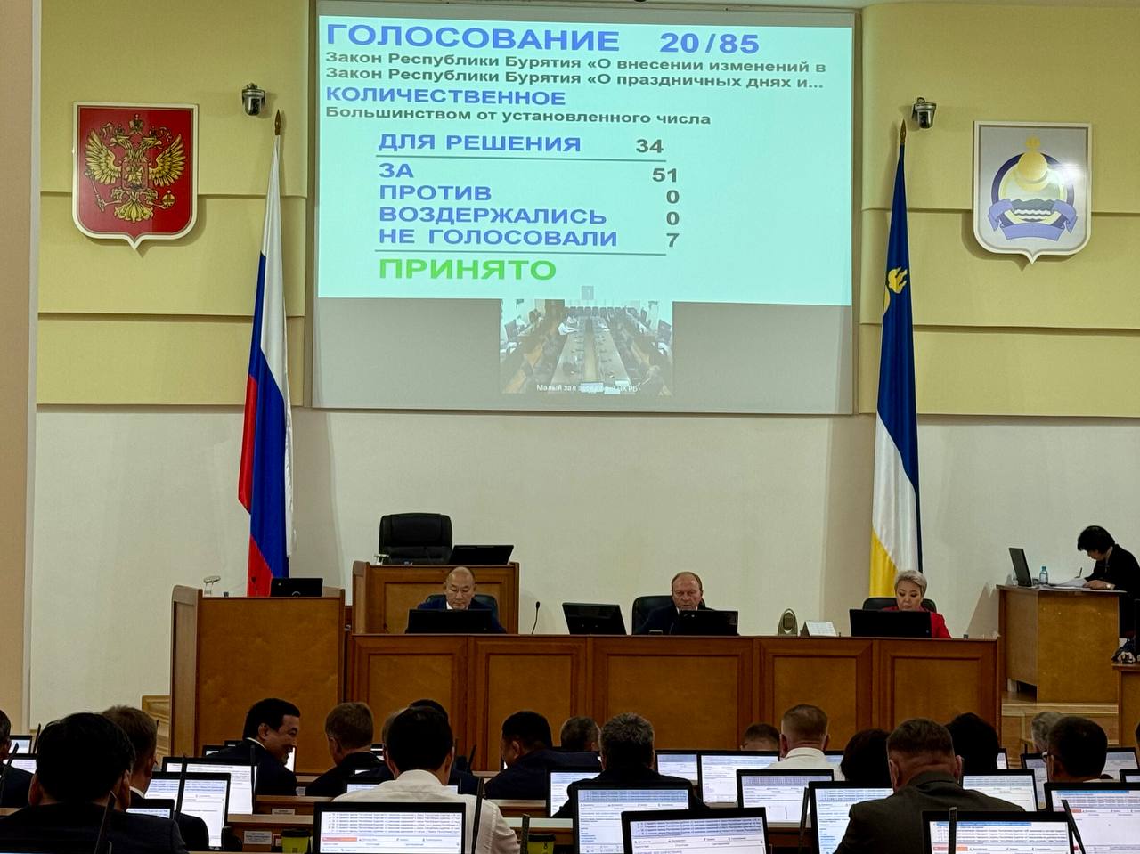 Также на сессии утвердили еще одну памятную дату – День ветеранов боевых действий. Он уже получил официальный статус в 29 российских регионах, а теперь будет отмечаться и в Бурятии. Памятную дату установили на 1-е июля.