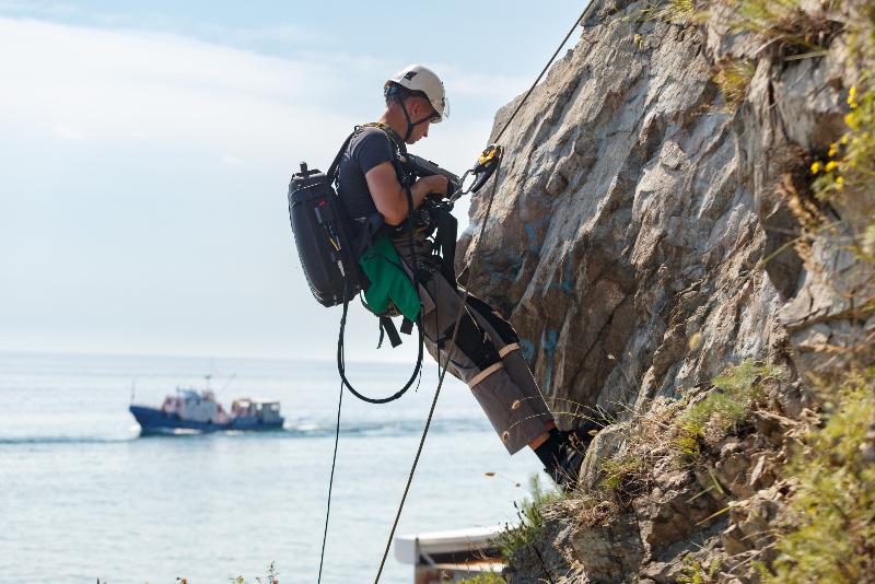А еще весь день чистильщикам байкальских скал приходится работать на жаре, носить на себе тяжелый лазерный аппарат, перетаскивать удлинители.