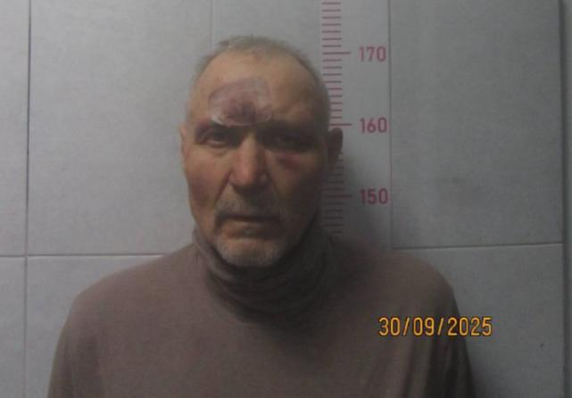 Приметы: европейской внешности, на вид около 60-65 лет, худощавого телосложения, рост 173-175 см., волосы редкие, седые, большие залысины. На лице — седая щетина, на лбу ссадина, под левым глазом кровоподтек, нос с горбинкой с искривлением в правую сторону.