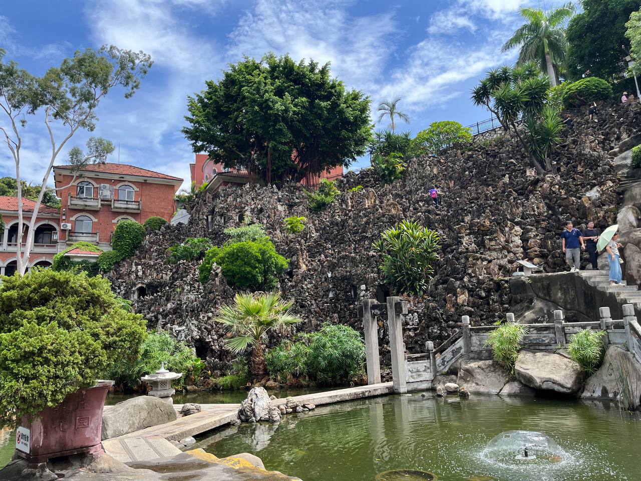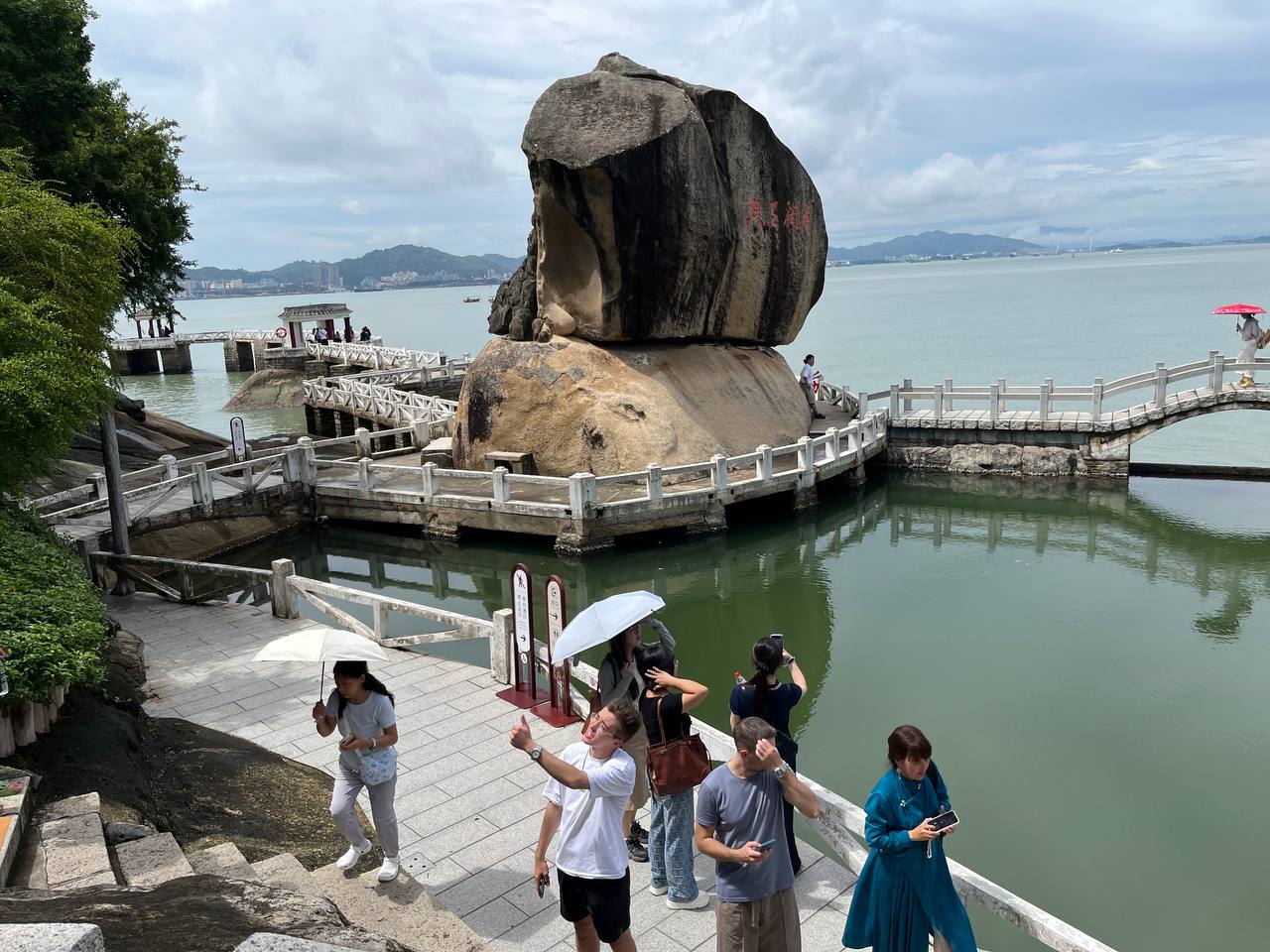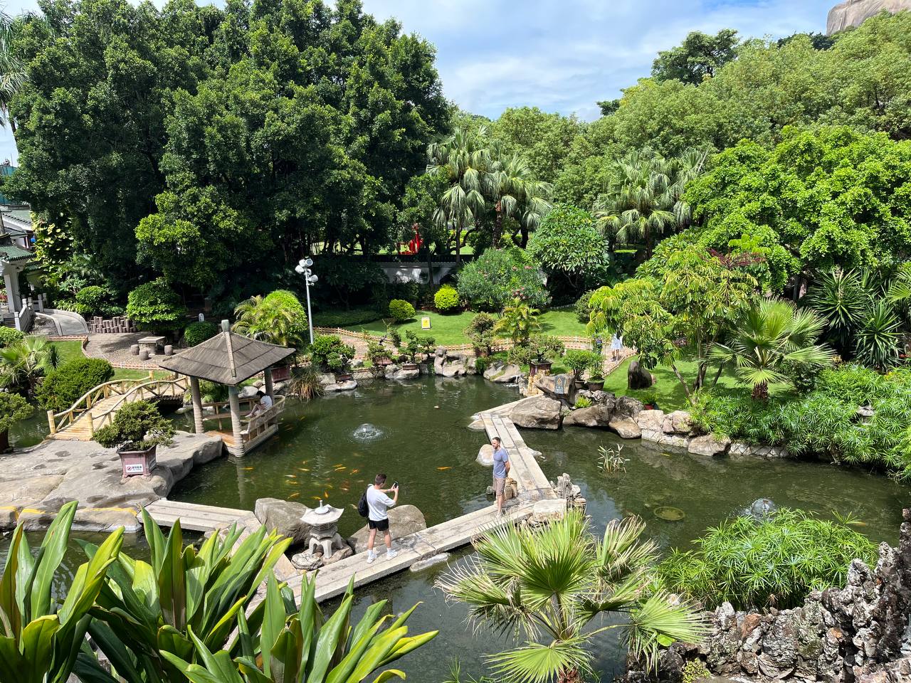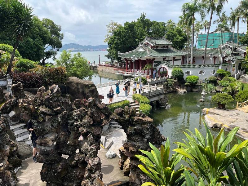 Из музея можно попасть прямиком в сады Шучжуан. Пруды с карпами, черепичные крыши беседок, каменные пещерки и запах моря где-то вдалеке. Парк разделен на две части, каждая из которых носит поэтичное название — «Сад прячущегося моря» и «Сад цветущих гор». Это настоящее воплощение гармонии в садовом искусстве: он выглядит как творение природы, но представляет собой миниатюрный мир, создающий ощущение завершенности. Как оказалось, заложили его в 30-е годы ХХ века. Тогда это была частная вилла, а сейчас одно из самых любимых и популярных мест у туристов. Примечательно, но в большинстве посещают остров именно сами китайцы. На Гуланъюе они скрываются от городской суеты и шума. Ведь на острове нет машин и даже велосипедов. А мы передвигались на экскурсионных электромобилях. И название у острова умиротворяющее. В китайском имени острова слышится шум океанских волн. Слово «гу лан» переводится как «удары волн», а «юй» — как «островок».