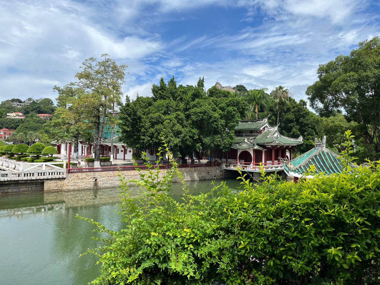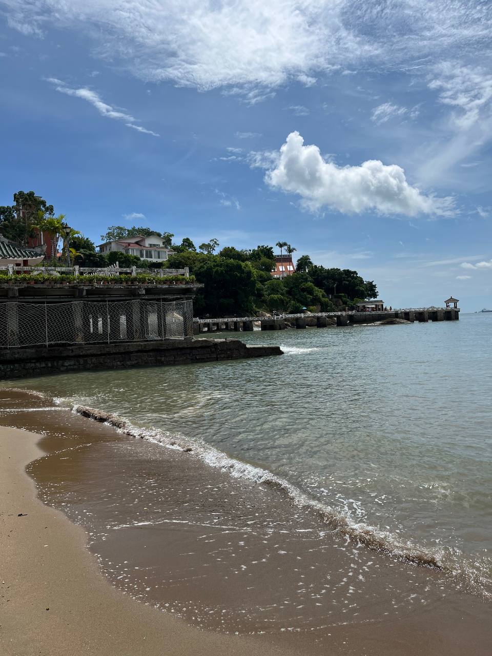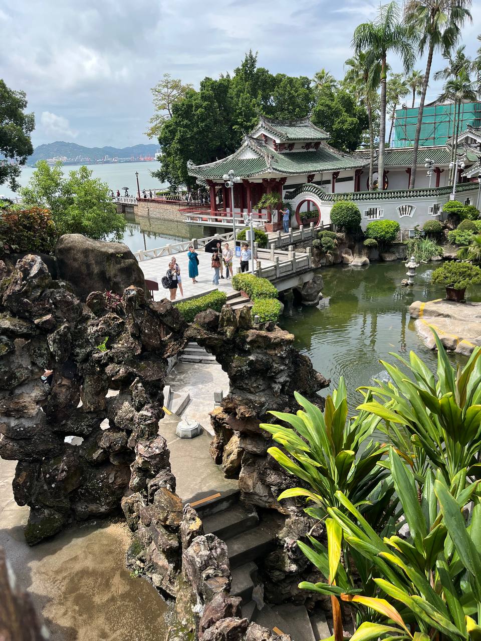 Из музея можно попасть прямиком в сады Шучжуан. Пруды с карпами, черепичные крыши беседок, каменные пещерки и запах моря где-то вдалеке. Парк разделен на две части, каждая из которых носит поэтичное название — «Сад прячущегося моря» и «Сад цветущих гор». Это настоящее воплощение гармонии в садовом искусстве: он выглядит как творение природы, но представляет собой миниатюрный мир, создающий ощущение завершенности. Как оказалось, заложили его в 30-е годы ХХ века. Тогда это была частная вилла, а сейчас одно из самых любимых и популярных мест у туристов. Примечательно, но в большинстве посещают остров именно сами китайцы. На Гуланъюе они скрываются от городской суеты и шума. Ведь на острове нет машин и даже велосипедов. А мы передвигались на экскурсионных электромобилях. И название у острова умиротворяющее. В китайском имени острова слышится шум океанских волн. Слово «гу лан» переводится как «удары волн», а «юй» — как «островок».